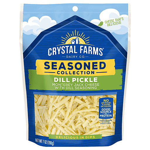 Love dill pickles? Meet your new favorite cheese. Our Dill Pickle Seasoned Shred features the creamy, mild flavor of Monterey Jack, perfectly complemented by the bright and zesty flavors of dill pickle - bringing a punch of personality to every bite. Great in melty, crave-worthy dips, sprinkled on top of salads or just snacking straight from the bag (no judgement), this one's a flavor bomb waiting to happen.