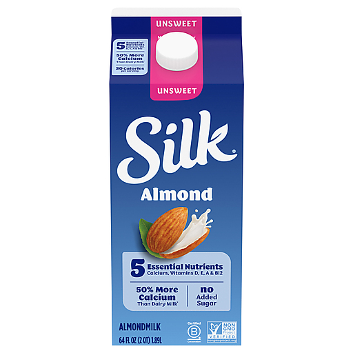 Silk Unsweet Almondmilk delivers delicious nutrition with five essential nutrients, including calcium and vitamin A, vitamin D, vitamin E and vitamin B12, and no added sugar per serving.* Plus, this plant based milk contains 50% more calcium than dairy milk** and provides vitamin D to help support strong bones. Silk Almondmilk is free of dairy, soy, lactose, gluten, casein, egg and carrageenan. Whether you’re making a bowl of breakfast cereal, adding it to smoothies or drinking straight out of a glass, Silk Original Almondmilk will leave you feeling planty good.