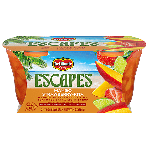 Del Monte® Escapes contain real pieces of juicy fruit in delicious, non-alcoholic cocktail inspired flavors. Mango Strawberry-Rita features mangos in a strawberry lime flavored syrup. These fruit cup snacks are an excellent source of Vitamin C with no artificial sweeteners. Packaged in individual cups, Del Monte® Escapes are a perfect on the go snack - so you can enjoy a moment of escape anytime, anywhere.