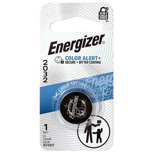 Experience our longest lasting 2032 battery with Energizer 2032 Lithium Coin Batteries, featuring the world’s first 3-in-1 Child Shield with three lines of defense: Color Alert, a bitter coating, and secure packaging. Only Energizer helps kids stay safe with new Color Alert technology that dyes the mouth blue seconds after contact with saliva to indicate possible ingestion. The non-toxic bitter coating helps discourage ingestion, while the secure packaging is almost impossible to open without scissors. Energizer lithium 2032 batteries perform in extreme temperatures ranging from -22 to 140 degrees Fahrenheit for dependable power, even in the toughest conditions. Reach for these Energizer batteries when you need key fob batteries, batteries for remotes, or batteries for glucose monitors or heart monitors. Energizer coin batteries are also an ideal power source for your keyless entry system, toys and games. Lasting up to 12 years in storage, these lithium batteries provide reliable power when you need it most.