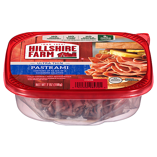 Bring the goodness of the farm to your table and experience the taste of a homestyle sandwich made with Hillshire Farm Ultra Thin Sliced Pastrami Sandwich Meat. Made with perfectly seasoned, cured beef, our pastrami is juicy, flavorful and 95% fat-free. Our farmhouse quality pastrami is made with no artificial preservatives or flavors, and no nitrates or nitrites added (except for those naturally occurring in the celery juice powder and sea salt). Try our sliced pastrami in a sandwich or wrap, on a salad or as part of a charcuterie board. Each 7-ounce package of Hillshire Farm Pastrami is double sealed for freshness and flavor. At Hillshire Farm brand, we are committed to the values of the farm, and we know that quality is always the most important ingredient. You can taste the generations of care and craftsmanship in every recipe because farmhouse values never go out of season.