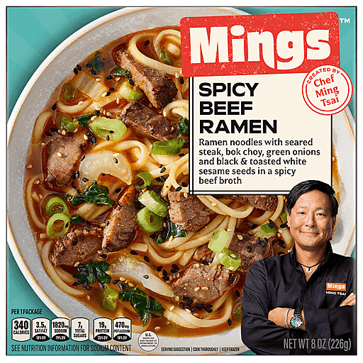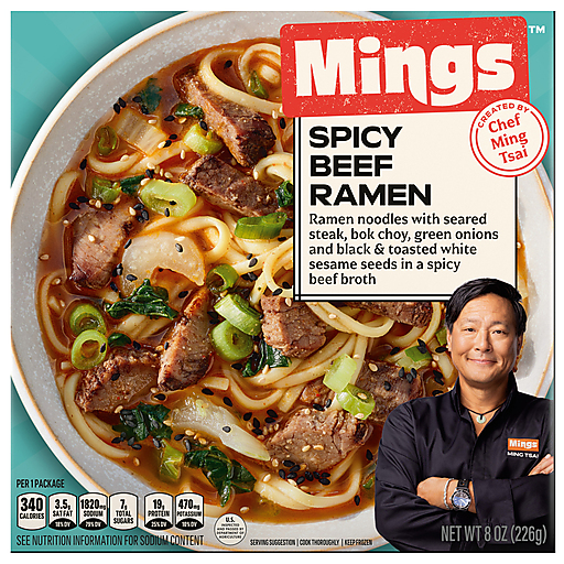 Elevate your culinary adventures with this ramen bowl. Mings Spicy Beef Ramen was created by celebrity Chef Ming Tsai. His culinary journey began at his family’s restaurant, Mandarin Kitchen. He spent years mastering his East-West cuisine, while always staying true to his roots. With over 40 years of culinary experience, Chef Ming brings an approachable authenticity to his cooking and this beef ramen bowl is no exception. Savor high-quality authentic Asian food featuring noodles, seared steak, bok choy, green onions and black & toasted white sesame seeds in a spicy beef broth. When you bring Mings Spicy Beef Ramen home, you’ll experience his signature cooking style at your own dinner table – from Ming’s kitchen to yours.