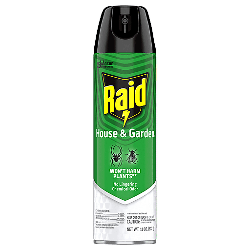 Take back your space with Raid House & Garden Bug Spray. It kills bugs on contact and won’t damage your house or garden plants. This insect spray has no lingering chemical odor and is easy to use. It’s a bug killer that can be used indoors or outdoors wherever ants, roaches, spiders, flies, and other listed bugs may be infesting.