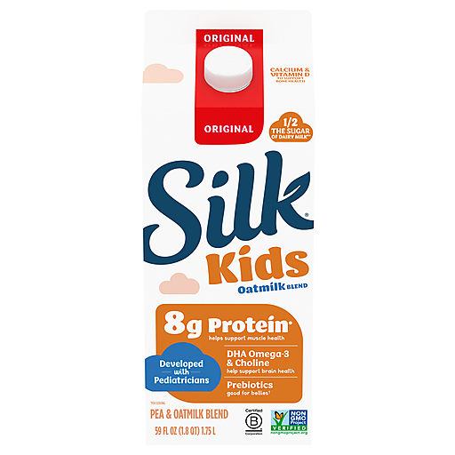 Discover the creamy delight of Silk Dairy Free Kids Original Oatmilk Blend, a nourishing choice for your kids. This oatmilk blend is crafted to offer the creamy taste kids adore while delivering advanced nutrition that parents seek. Each serving is packed with essential vitamins and minerals, and has half the sugar of dairy milk. This makes it a delightful and health-conscious choice to add to breakfast or snacks. With a smooth texture, it’s perfect for sipping, pouring over cereal, or blending into smoothies. Enjoy the peace of mind that comes with a dairy-free, gluten-free, and vegan option that supports a balanced lifestyle. Feel Planty Good knowing that Silk supports almond farmers in implementing regenerative agriculture practices that work in harmony with nature and help restore the land.