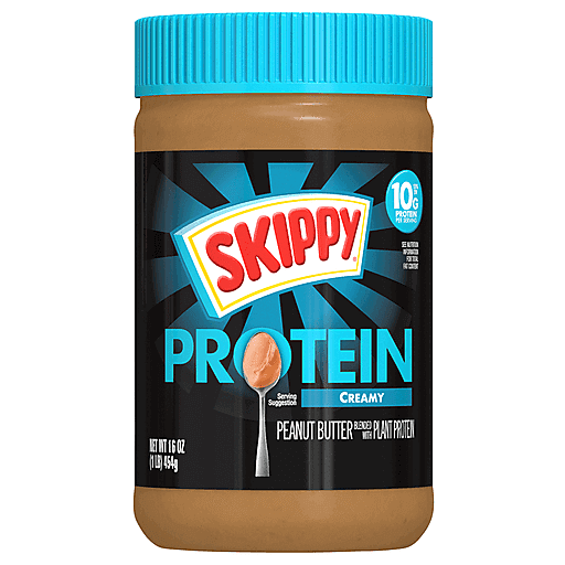 SKIPPY Creamy Peanut Butter Blended with Plant Protein, 16oz Plastic Jar