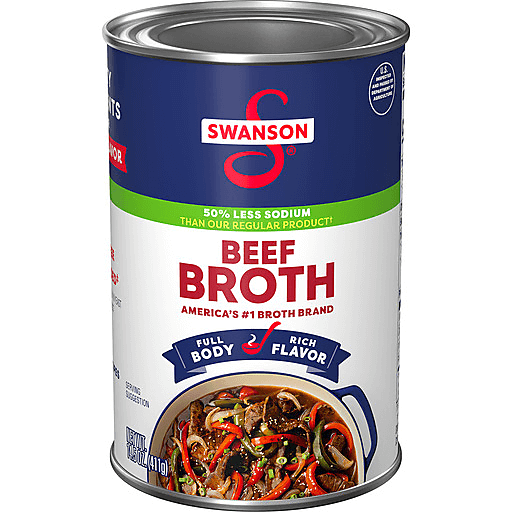 Bring rich, full-bodied flavor to your kitchen with Swanson® 50% Less Sodium* Beef Broth. Made with high-quality ingredients you can trust, this broth delivers the full body and rich flavor you love, but with 50% less sodium than our regular product*. Whether you're whipping up homemade soups, stews, or one-pot pasta dishes, this broth provides the perfect base for elevating your cooking without compromising on taste.