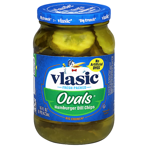 Vlasic Ovals Hamburger Dill Pickle Chips are deliciously crunchy and offer classic dill flavor. All ingredients, along with the Vlasic pickling recipe, make these hamburger dill chips one-of-a-kind. These hamburger dill pickles contain 5 calories per serving. Oval pickles are perfect for adding to deli sandwiches. Pile these dill pickle chips on hamburgers, top fresh salads, or eat them right from the jar as a satisfying snack. Vlasic Ovals Hamburger Dill Pickle Chips are packed in a 16 fluid ounce resealable jar to keep them crunchy and delicious. Vlasic offers several flavors and sizes of pickles, peppers and relish. Keto friendly: 1g net carbs (1g total carbs minus 0g dietary fiber), and 0g added sugar per serving.